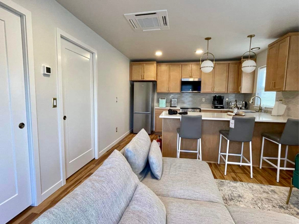 Lagana i svijetla seoska kuća za odmor u centru Benda sa uređenim ograđenim dvorištem i HIDROMASAŽNOM KADOM. Prošetajte do pivara, restorana, kafića , umjetničkih galerija i rijeke Deschutes. Jednosobna jedinica sa jednom kupatilom ima zaseban krevet za kraljicu memorijske pene u dnevnoj sobi. Privatna vešernica. Privatna parking mjesta pozadi. Otvorite tlocrt s nadsvođenim plafonima i automatizovanim krovnim zavjesama. Dovršite preuređenje. Prikladno za kućne ljubimce (mora se dodati kućnog ljubimca u rezervaciju).