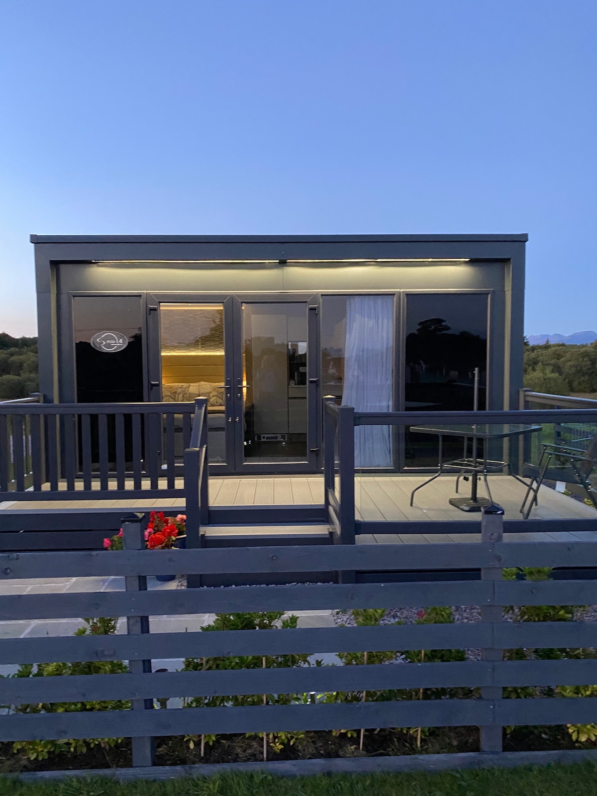 Set at the end of a quiet track within the grounds of our home, this cosy garden annex offers a peaceful winter retreat for two. Warm and comfortable, it features an open-plan kitchen and living area with sofa, dining table and TV, plus patio doors opening onto a private deck. The bedroom has a double bed and good storage, with a compact bathroom and shower. Just a 10-minute walk from Tralee Beach and a short drive to Oban, it’s ideal for quiet winter breaks or longer off-season stays.