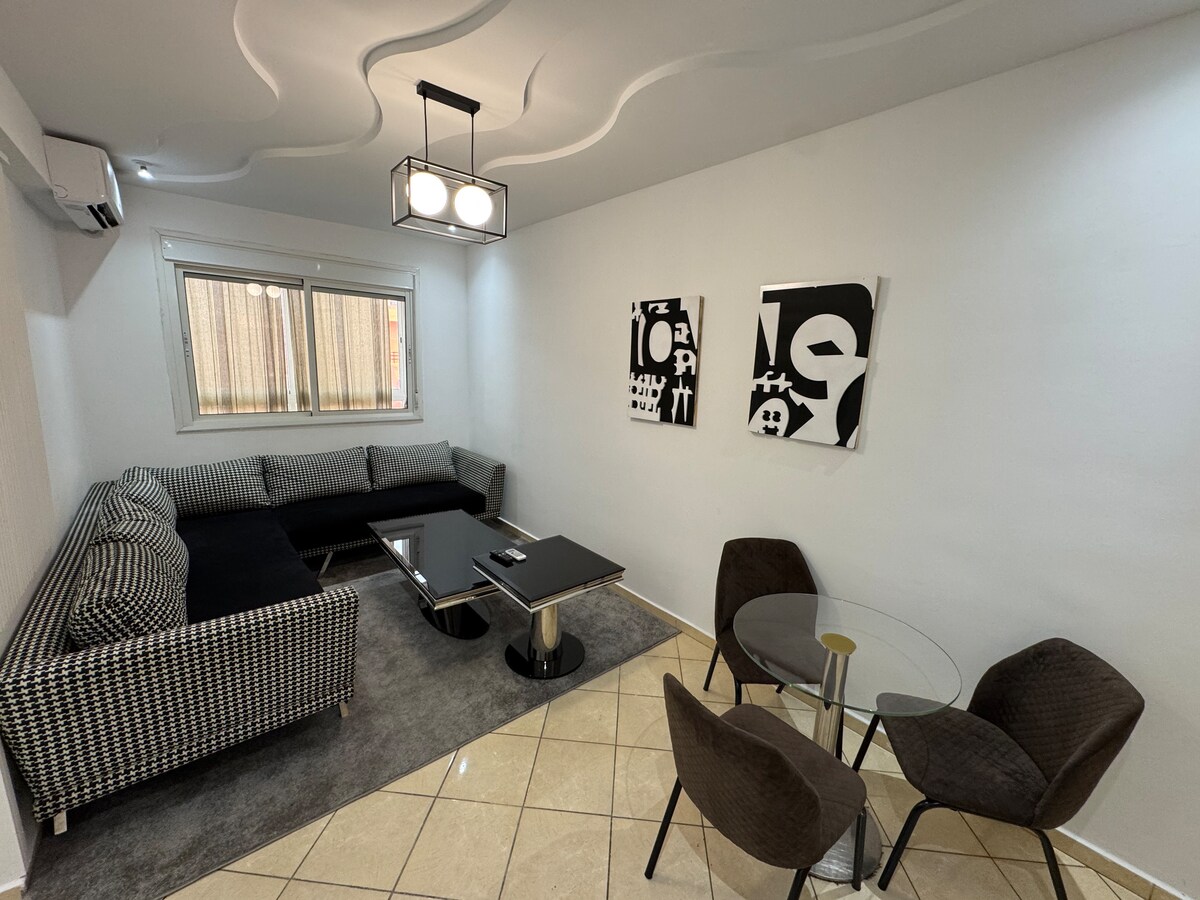 Moderan i miran stan u Beni Melalu, idealan za porodice ili grupe. Uključuje veliki marokanski dnevni boravak, mali američki dnevni boravak, 2 spavaće sobe (za 4 osobe), opremljenu kuhinju, tuš i 3 velika balkona. Uživajte u brzom Wi-Fi internetu, klima-uređaju, mašini za pranje veša, televizoru sa Netflixom i novim aparatima. Nalazi se u mirnoj četvrti, u blizini prodavnica. - veoma je važno da mi dostavite ličnu kartu. – Zabranjeno je unošenje alkohola u smještaj.