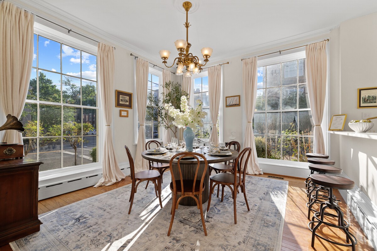 Elegantna i bezvremenska, ova dvokrevetna kuća u srcu grada može se pohvaliti policama za knjige od poda do plafona, arhitektonskim stepeništem, kaminom na drva i bujnom privatnom baštom prepunom festoon svetla. Nepobjediva lokacija - možete da prošetate bilo gde: kafići, restorani, metro, joga, prodavnice namirnica, prodavnice i butici u izobilju. Bezbedan, porodični i prijatan za pse, kao što je komšija Džordžtaun u Vašingtonu, može da hoda, šarmantan je i ispunjen vrhunskim restoranima i barovima.