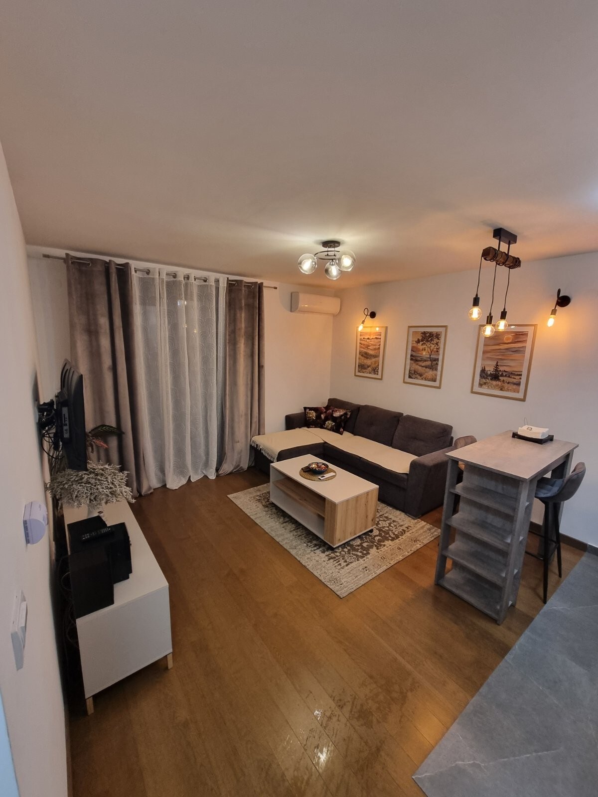 Ovaj elegantni smještaj je savršen za grupna putovanja. Jednosoban stan sa odvojenom kuhinjom i trpezarijom. Spavaća soba, to je takođe dnevni boravak, sadrži bračni krevet za 2 osobe, a u kuhinji postoji kauč na razvlačenje (90 cm-200 cm) koji može da uključi bračni krevet i 2 osobe mogu da spavaju tamo. Takođe je tu terasa kao mesto za jutarnju kafu i opuštanje.