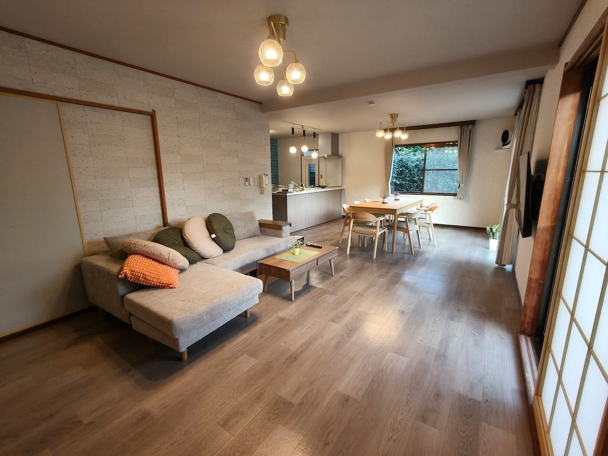 2025年にフルリノベーションされた、使いやすく広々としたおしゃれで機能的な一軒家です。誰にも邪魔されない専用温泉と広々とした庭があり、大きい車も含め、自家用車は3台まで駐車できます。押し入れやクローゼット等収納が丸ごと使えて、十分な収納も自慢の家です。 高速無料Wifiはもちろんのこと、地デジテレビやNetfrix、Youtube, Prime Videoなどが視聴できるテレビを完備。好きな番組も見逃しません。 大人数での自由な旅の拠点に最適。赤ちゃん、乳幼児、お子様にも優しいアメニティやグッズがそろっています。 快適、清潔、おしゃれな設備と3台の無料駐車スペースで、家族や仲間との滞在をお楽しみください。