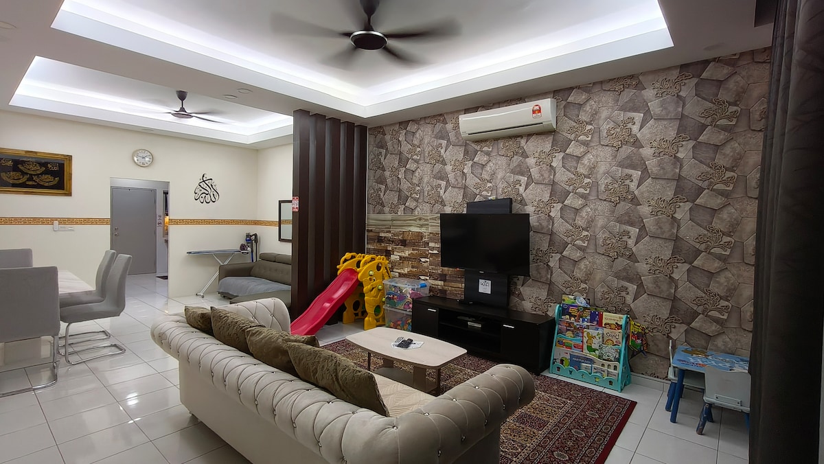 Zakoračite u prostor dizajniran za mir i udobnost. Casa de Luna je vaš moderni odmor na mjesečini u kojem se jednostavnost spaja s toplinom, savršena za miran odmor, male porodice ili mirne pauze za vikend. Po ✨ čemu je poseban: • Udoban raspored sa 3 spavaće sobe (sa svim klima-uređajima, uključujući dnevni hodnik) • Gintell stolica za masažu • Kuhinja prikladna za halal sa kolicima i mikrotalasnom rernom • Unifi 100mbps i TV od 65 inča (sa Netflix-om) • Mašina za veš i mašina za sušenje veša • Bazen, teretana i dječje igralište