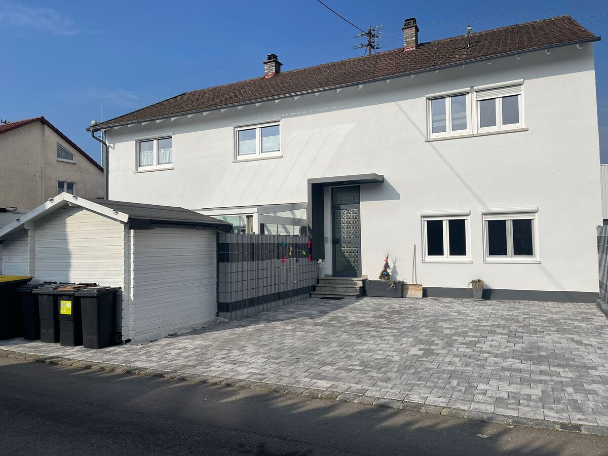 Surrounded by meadows and fields, this detached hideaway invites you to unwind. The charming family home is quietly located on the edge of a village in Upper Swabia, offering privacy and green views. Ideal for couples or small families with up to two children, as well as for relaxing stays or focused work. Thanks to direct access to the B30, Lake Constance and Ravensburg are easy to reach. A calm residential area – perfect to relax after an active day.