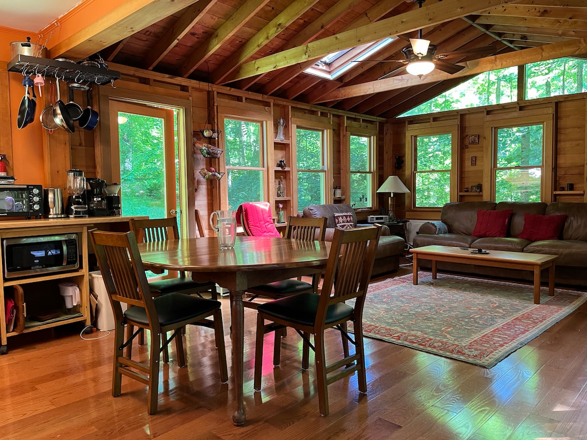 THE BERKSHIRES COTTAGE IN THE WOODS BY A SPRING FED LAKE HAS SOMETHING FOR EVERYONE …. SWIM, FISH, KAJAK, HIKE, SKI, JACOBS PILLOW DANCE FESTIVALS, TANGLEWOOD OUTDOOR CONCERTS, GOLF, DINE, SHOP LEE OUTLETS, DINE WITH ENTERTAINMENT, PLAYS, ANTIQUES, FIRE PITS, HANGING IN A HAMMOCK, FLOAT ON CRYSTAL CLEAR WATER, BBQ ON THE DECK, OR JUST DO NOTHING AT ALL BREAK AND RECHARGE. POBEGNITE I OPUSTITE SE. (90 sekundi hoda kroz šumovitu stazu do jezera) Kućni ljubimci su dozvoljeni. Odobreni kućni ljubimac = odobreni Ugovor o kućnim ljubimcima.