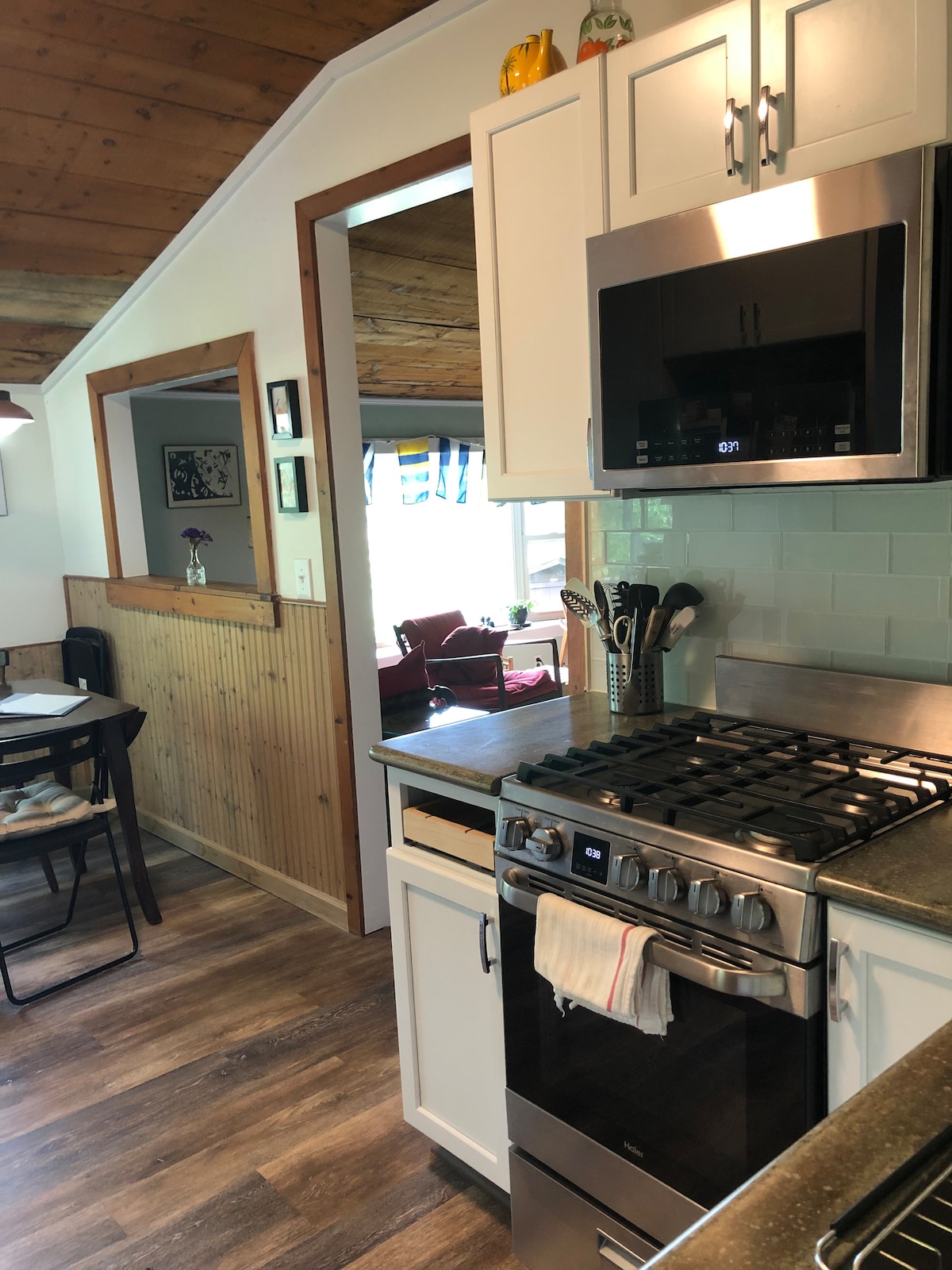 Žuta • 1750 ft² (170m²), seoska kuća na 2 nivoa • Otvoreni koncept sa pogledom od 180° iz dnevnog boravka • 3 spavaće sobe (svi bračni kreveti), 2 kupatila • Potpuno opremljena kuhinja • Privatno pristanište i ognjište (pristup neravnim stepenicama) • Kanu i 2 kajaka • Smart TV i 4 Google pametna zvučnika • 1 gigabitni Wi-Fi • Prostor za rad sa postoljem za laptop na spratu • Dodatni krevet pune veličine na spratu • Dodatni bračni krevet u prizemlju • Dodatni dvostruki ruksak u prizemlju • Mašina za pranje i sušenje veša sa deterdžentom za veš