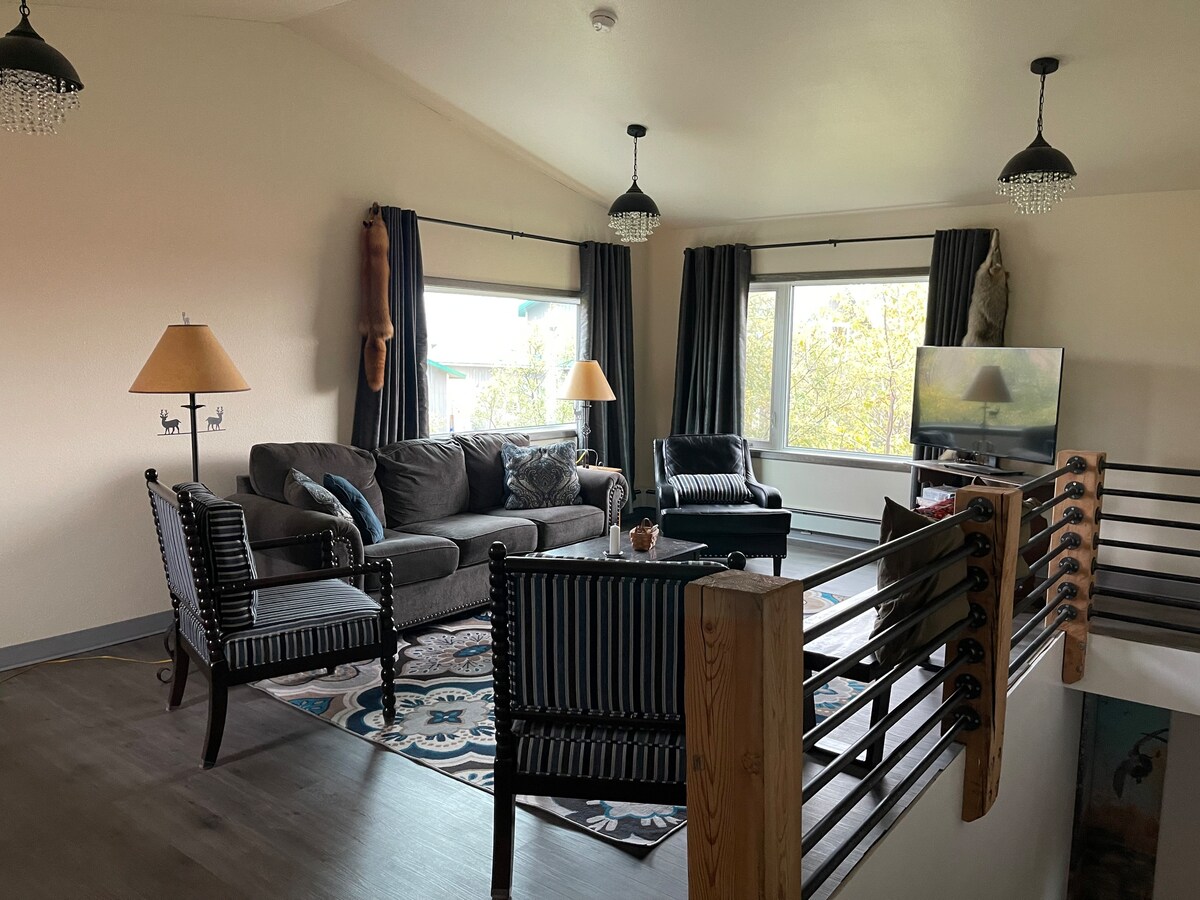 Potpuno novi dupleks koji se nalazi u ulici Ptarmigan, udaljen od centra Betela. Sve u jedinici je novo. Spavajte u oblaku kao da ste u luksuznom ambijentu uz dušek od 12 inča koji služi za opuštanje tokom noći. Opustite se u vrlo udobnom naslonjaču Leather Power i ljubavnom sedištu. Pripremite se i večerajte u kuhinji pune veličine. Pratite svoje zadatke i zadatke tako što ćete koristiti naš radni prostor/stolicu i besplatan Wi-Fi. Uživajte i gledajte svoje emisije uz "50" 4K Ultra HD Smart led TV!