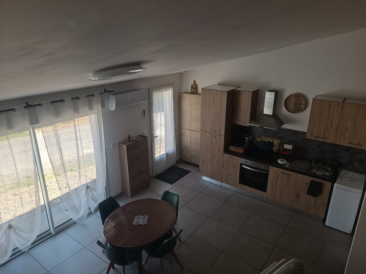 ✨Priuštite sebi opuštajući odmor za dvoje u ovoj modernoj kući, koja se nalazi na selu. Dizajniran za odmor za parove, smještaj objedinjuje mir, udobnost i eleganciju. Svijetla soba ima veliki prozor s neometanim pogledom na prostrano polje, koji vas poziva da se isključite čim se probudite. Za trenutak apsolutnog opuštanja, možete uživati u spa kupki, idealnoj za opuštanje nakon dana provedenog u otkrivanju ili jednostavno uživati u trenutku blagostanja za dvoje.
