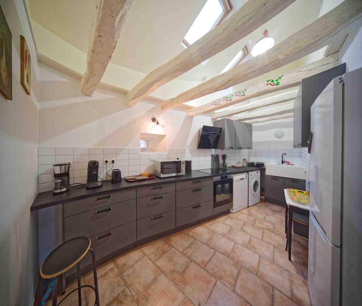 Smještena u blizini vinograda Chinon, u srcu dvoraca Loare, ova prostrana šarmantna seoska kućica površine 140 m2, ima sve sadržaje za prijatno vreme u Turainu. Privatni i zaštićeni đakuzi, terasa i roštilj Weber će zauzimati vaše večeri. Pristup bazenu sa grejanjem od maja do oktobra Na imanju iz 13. vijeka, bivša seoska kuća Fontevriste.