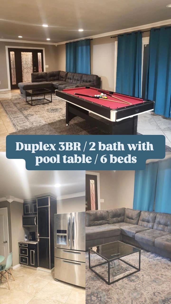 Duplex 3BR/2 bath/6 beds w/ pool table and kitchen