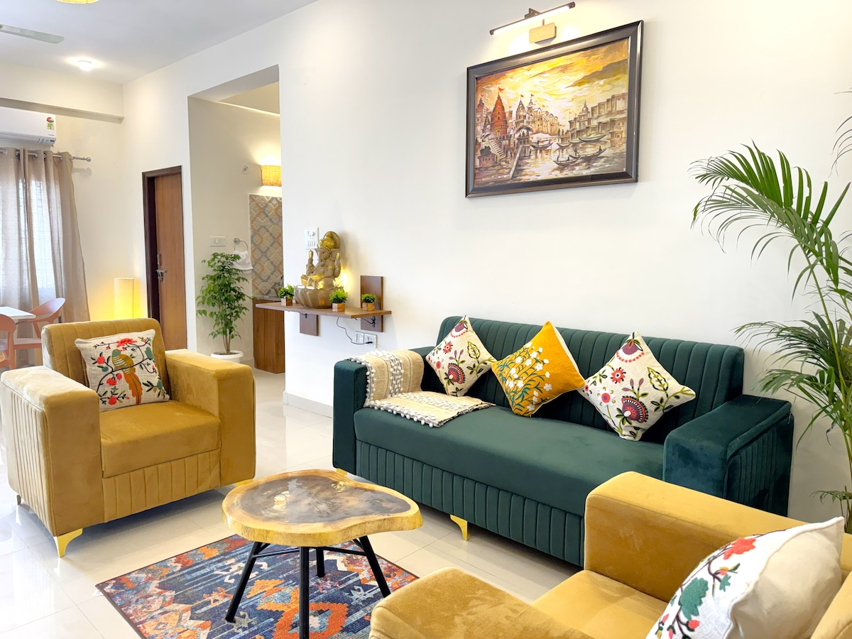 Boho i moderan smeštaj sa 2 spavaće sobe | Blizu hrama Kaši i Gata