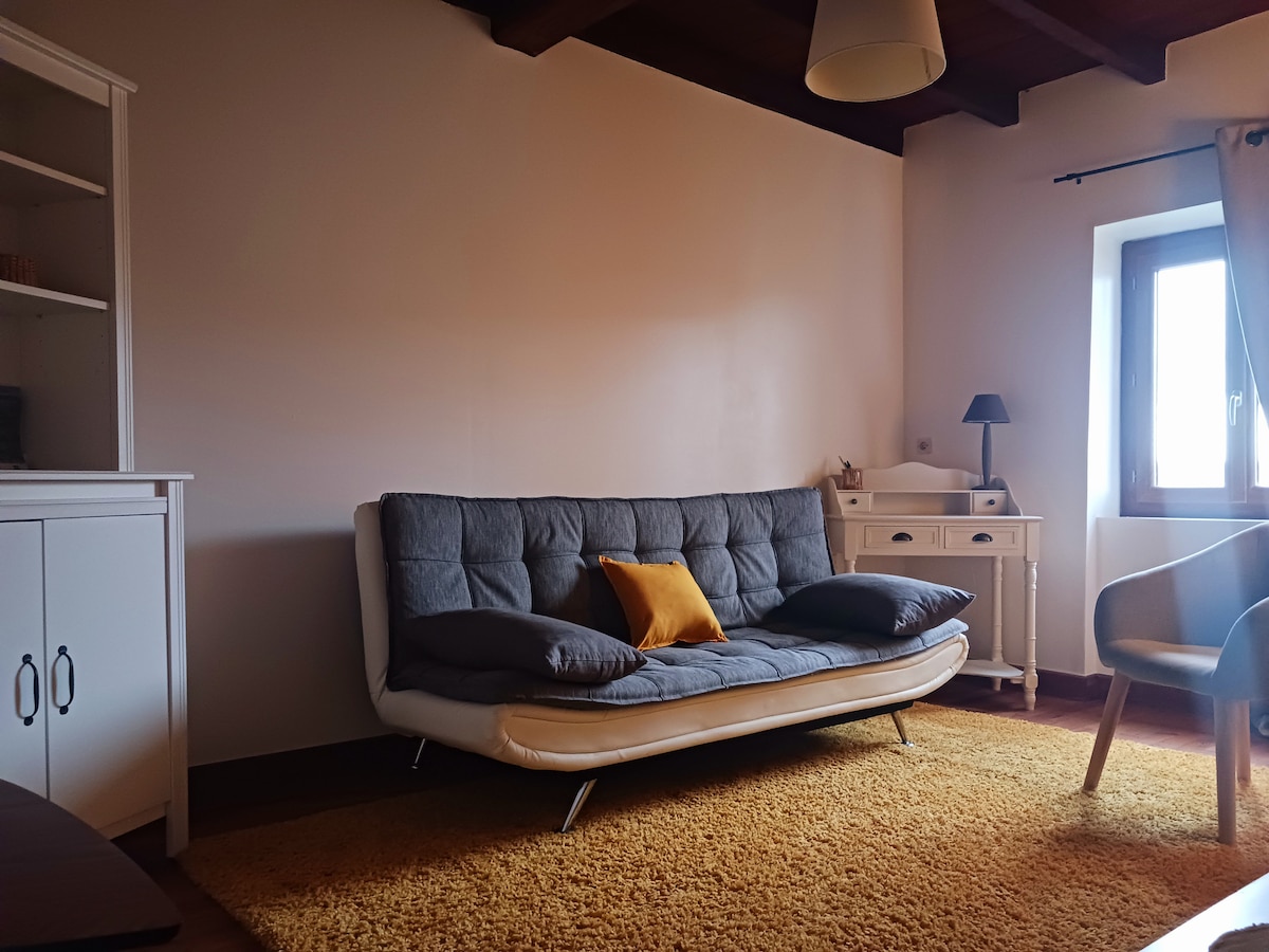 Uživajte u prijatnom mirnom boravku u novom studiju na selu, prostranom, sa nezavisnim ulazom, koji se nalazi u blizini izlaza A89 (5 min), izlaza A6 (15 min) i vozom TER (udaljenom 3 km). - Potpuno opremljena čajna kuhinja: frižider, mašina za sudove, mikrotalasna rerna, indukciona ploča za kuvanje, aparat za kafu, čajnik, posuđe - Bračni krevet i kauč - Kupatilo sa italijanskim tušem i privatnim WC-om - 2 televizora i video projektor (mnogo filmova) - Privatan baštenski nameštaj