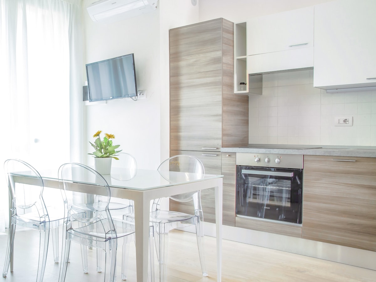 Dizajnerski studio apartman u živahnom području Univerziteta Bikoka, na samo 5 minuta hoda od metroa koji vas povezuje sa centrom Milana za oko 20 minuta. Može da ugosti 4 osobe zahvaljujući bračnom krevetu na međuspratu i udobnom kauču na razvlačenje. - 4K Smart TV - Izuzetno brz Wi-Fi idealan za pametni rad - Potpuno opremljena kuhinja - Moderno kupatilo sa kompletom Made in Italy Područje je puno prodavnica i restorana! Jedva čekam da vas ugostim!