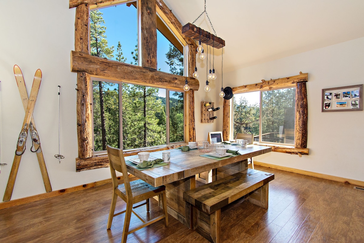 Prelepa brvnara renovirana 2025. godine. Luksuzna brvnara Moonridge od 2000 kvadratnih stopa. Ft sa 3 spavaće sobe, 2,5 kupatila i potkrovljem. Predivan pogled na padine sa terase i svih prozora. Ima nivo ulaza za lak pristup brvnari. Privatna terasa sa spa centrom za 7 osoba, roštiljem i prostorom za sjedenje. Pametni televizori. U blizini skijališta/grada sa prelijepim pogledom na skijašku stazu. Uživajte u lijepoj šetnji do centra Munridža novom pedalinom udaljenom manje od 0,5 milje od prelijepe brvnare.