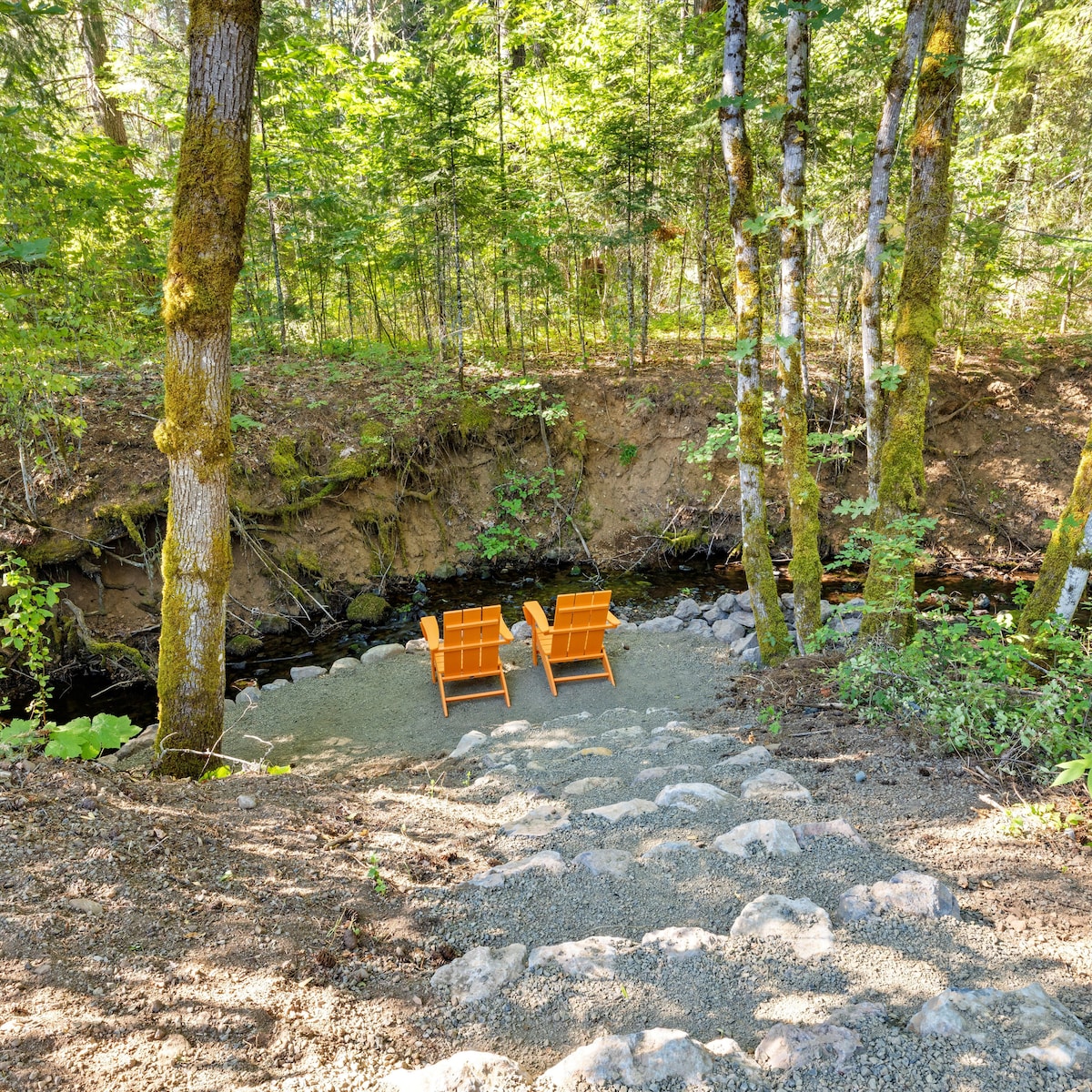 Dizajnirali smo i izgradili naše utočište White Salmon Retreat tako da bude prikladan za porodice, kućne ljubimce (20 $ po kućnom ljubimcu) i terapeutski prostor postavljen na drveću gdje vaša duša može da pronađe odmor i opuštanje. Naše utočište je okruženo zrelim stablima jelki, hrasta i javora, a posjećuju ga lokalne divlje životinje. Radujemo se što ćemo ovaj prostor podeliti sa vama. Potpuno opremljena kuhinja! Koristimo sapun za pranje veša i sredstva za čišćenje bez mirisa. Mašina za pranje/sušenje veša. Terasa sa stolom za ognjište i plinskim roštiljem. Dušek od nektar je tako UDOBAN!