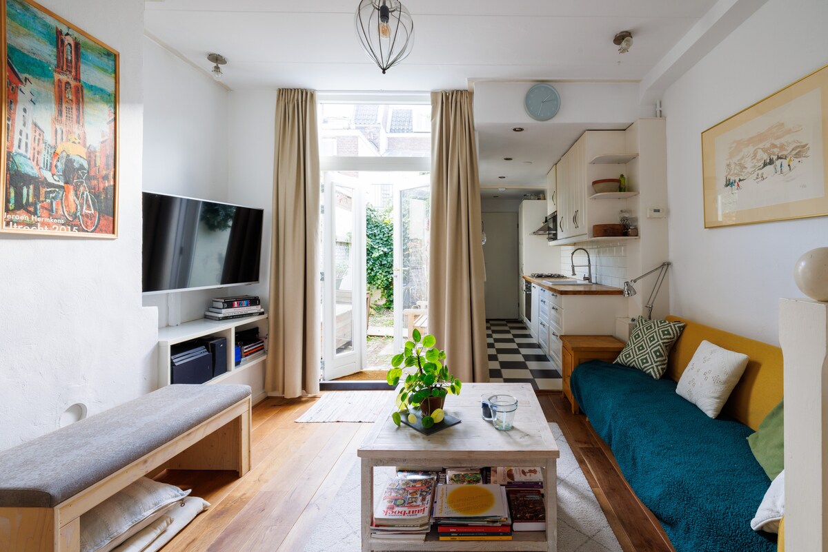 Ovaj udoban, čist, svetao i prostran stan nalazi se na najlepšem kanalu u istorijskom srcu Utrehta i nalazi se na pješačkoj udaljenosti od svih znamenitosti. To je ceo gornji sprat naše karakteristične, monumentalne kuće iz 1475. godine i ima odličan pogled na kanal iz dnevne sobe. Možete koristiti mirnu terasu pored kanala za doručak ili piće. Svideće vam se ovo posebno srednjovekovno mesto, tipično za Utreht! To je savršen dom daleko od kuće.