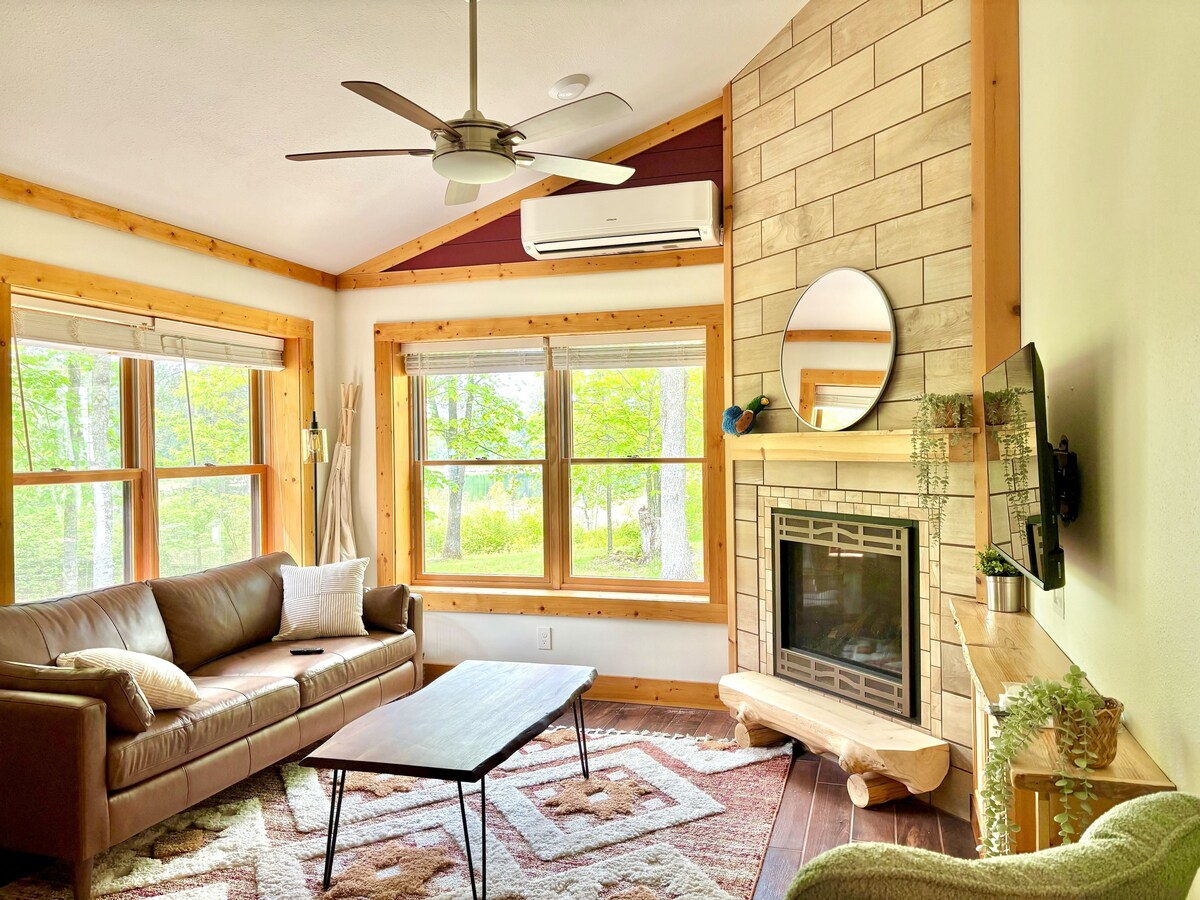 U Cozy Gnome A-Frame Cabin su dobrodošli i psi! Uživajte u romantičnom vikendu sa voljenom osobom dok sjedite pored vatre sa pogledom na jezero i uživate u sauni. Ili provedite zabavan ljetnji odmor sa svojom djecom i psom dok veslate na jezeru Heti. Drveni kamin, veliki prozori, dobro opremljena kuhinja, glavna spavaća soba, spavaća soba u potkrovlju i kupatilo. Klima-uređaji na prozorima u spavaćoj sobi i potkrovlju. 3 sata od Mineapolisa/Sent Pola. 45 minuta od Brajnerda. Skoro dva hektara. Pratite nas: @cozygnomeaframe