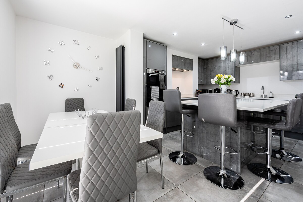 Mirni prigradski raj sa Velsom kao baštom i Liverpulom i Česterom nedaleko od vas. Kuća s 3 spavaće sobe i otvorenim kuhinjskim restoranom s dvostrukim pregradom koji pruža spoljašnjost unutrašnjosti po toplom danu i udobnim salonom. Pretvorena garaža u bioskopsku sobu 🎥 Besplatan parking je blizu gradova kao što su Liverpul i Čester. Šetnja do Sunčeve svjetlosti - 7 minuta Voz za Liverpul - 15 minuta Voz za Čester - 26 minuta Mnogo lokalnih pabova i restorana u blizini.