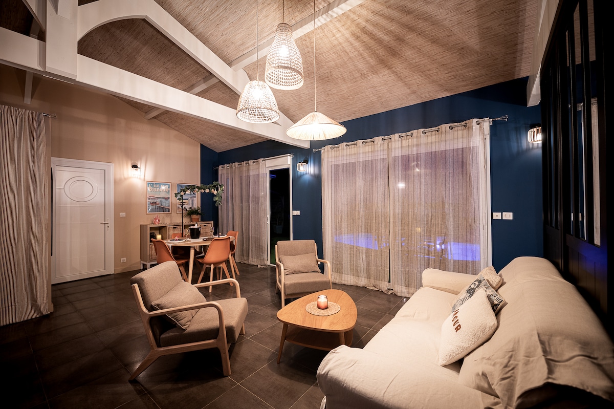 ✨ Vila Van ô den – Vaš odmor ✨ Uživajte u udobnoj vili u Biskarosu, idealnoj za 6 osoba, savršenoj za odmor sa porodicom ili prijateljima. Potpuno renovirana vila Van ô den nudi moderan i topao ambijent sa đakuzijem na otvorenom, kugljanom i dečjim igrama. Mesto osmišljeno za opuštanje, deljenje i nezaboravne uspomene između jezera i okeana.