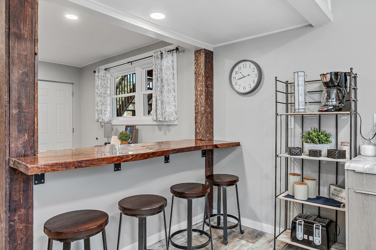 Sunrise Ridge sa prostranim spoljnim prostorom. Privatni ulaz, parking i terasa! Stan je ispod glavne kuće; prizemlje, bez stepenica. Moderni rustikalni detalji, preuređeno stilsko kupatilo/kuhinja sa svim sadržajima za pečenje/kuvanje. Wi-Fi i Roku sa besplatnim pristupom Netflix-u, Disney +, Maxu na televizoru sa velikim ekranom. Jedna spavaća soba: bračni krevet (širine 180-179 cm) s bračnim krevetom na sprat; futon u punoj veličini u dnevnoj sobi. Popust na boravak od 4 do 7 dana. Bez naknade za čišćenje! Pogledajte slike i opis - možda odgovara vašoj grupi!