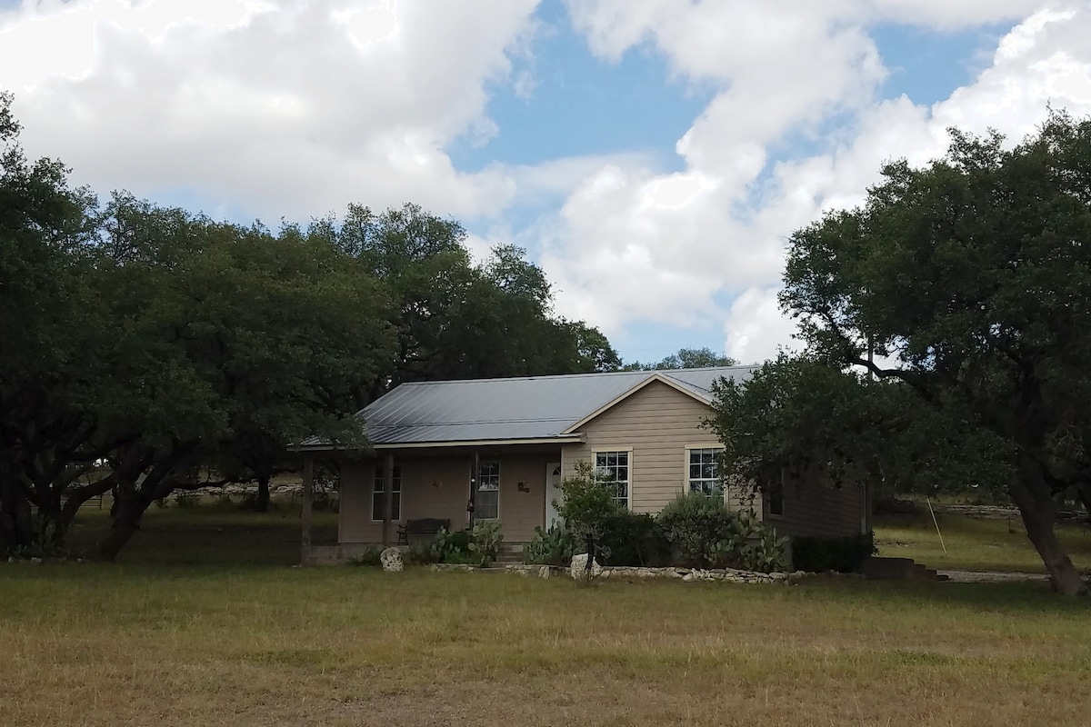 Udobna drvena, mala brvnara (820 kvadratnih metara) sa trijemom koji je okrenut prema šumi. 3 spavaće sobe, 1 kupatilo, kompletna kuhinja i LR šporet sa stomakom. Divan ambijent u zemlji sa jelenom/pticama/lisicama. Veliki ograđeni trem sa stolicama za ljuljanje i sedenje. Šest istraživačkih hektara (zajedno sa glavnom kućom), pet ljuljaški, dva ognjišta, roštilj na ćumur i malo jezerce. (Jezerce je novoizgrađeno) U blizini Vimberlija, Fišera, Džonson Sitija i Frederiksburga. Takođe, Državni park Blanko, Enchanted Rock, Pedernales Falls & Jacobs Well!
