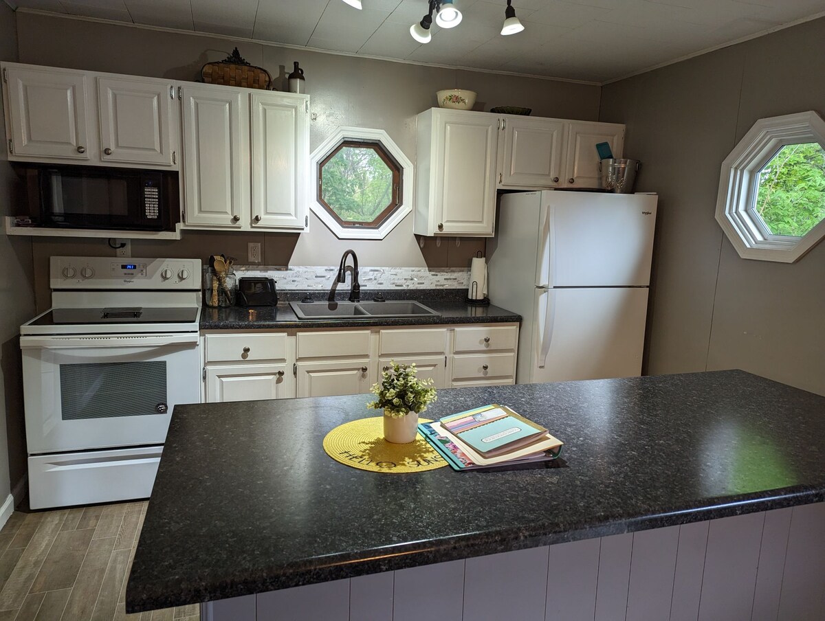 Zabavite se sa celom porodicom u ovom elegantnom smeštaju. Upravo smo ažurirali sadržaje. Pranje veša na licu mesta, tuš kabina sa pločicama, mikrotalasna rerna, šerpa za kafu, internet i još mnogo toga! Ima dražesnu verandu na kojoj možete da sjedite i uživate u jutarnjoj kafi! Nalazi se u mirnom području. Žao nam je, nema kućnih ljubimaca ni pušenja unutra. Uključuje jedan bračni krevet i kauč na razvlačenje Nudiće snižene mjesečne cijene