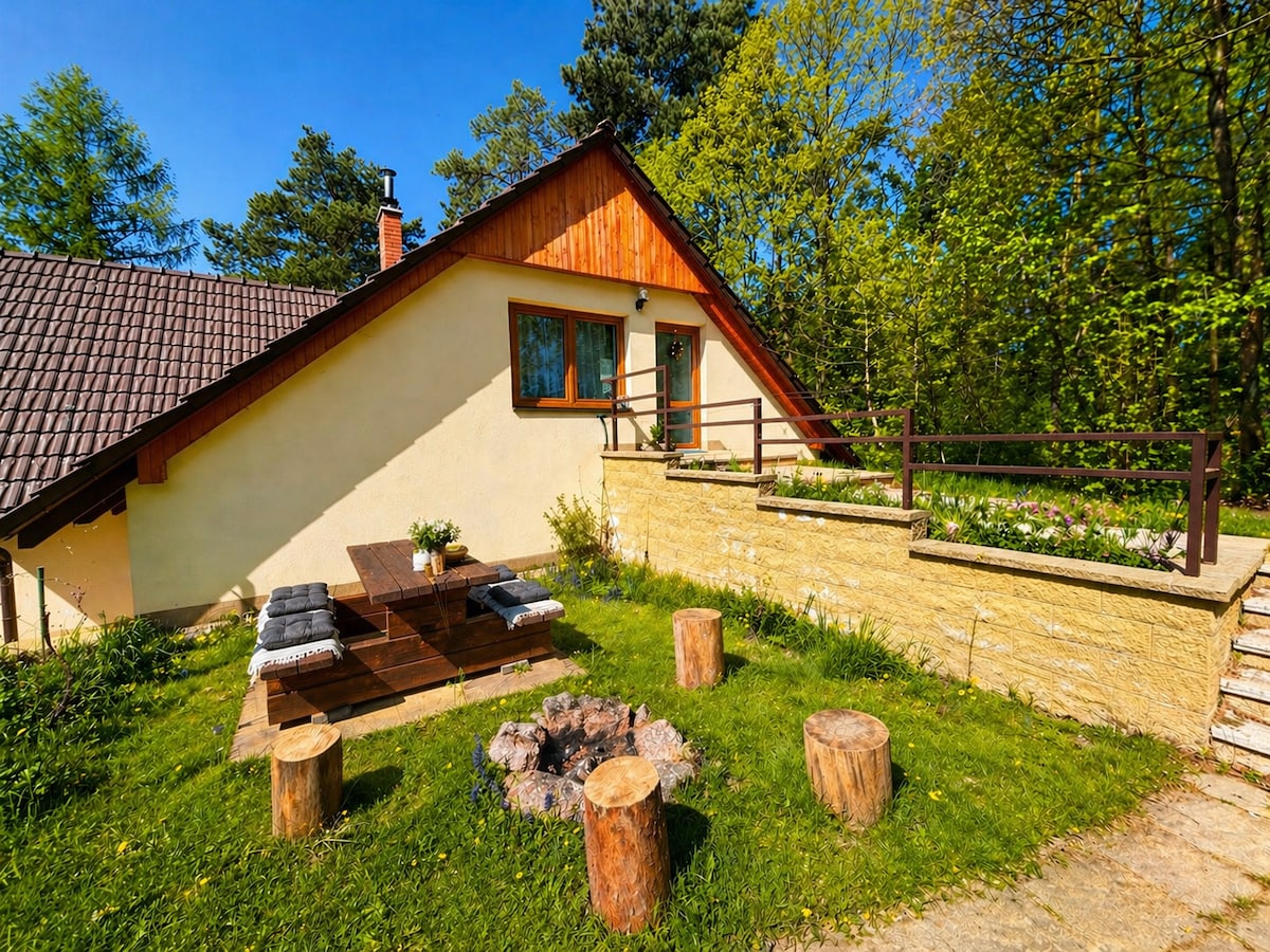 Seoska kuća s prekrasnim pogledom na nivo vode u Moravskom kršu. Sastoji se od jedne sobe(37 m2), ugla sa kadom i WC šolje. Tu je potpuno opremljena kuhinja. Grijanje se odvija pomoću kamina i infracrvenog tiganja. Postoji bračni krevet, krevet za jednu osobu i kauč na razvlačenje za dvoje. Bašta je velika 777 m2, ima samo jednog komšiju i sva je ograđena. Na raspolaganju vam je kanu za dvoje. Ovaj smještaj je za one koji žele da budu na otvorenom i da razumiju šta to podrazumijeva. Dragi gosti, molimo vas da kod nas ne tražite luksuz svojih stanova.