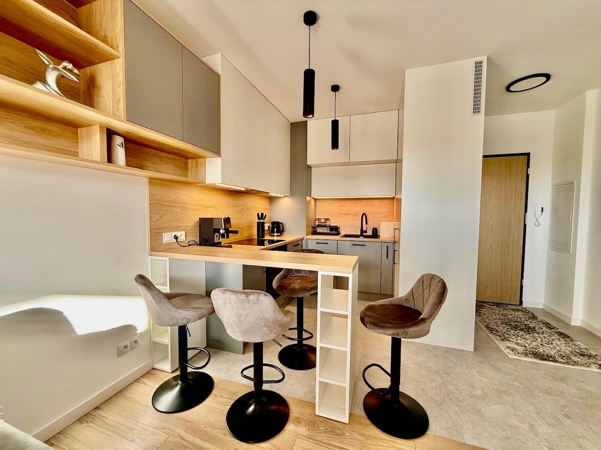 Nudim stan sa atmosferom i kompletnom opremom koja će vam olakšati boravak. Stan se nalazi u modernoj, nadgledanoj zgradi , takođe prilagođeno osobama sa invaliditetom , u blizini mnogih mjesta , prodavnica ,kafića ,restorana . Prednost je lokacija jedinice u blizini rute S8 i vrlo dobra komunikacija autobusima, tramvajima. Metroom možemo doći do samog centra Świętokrzyske i Nacionalnog stadiona. Prijava bez kontakta je jednostavna.