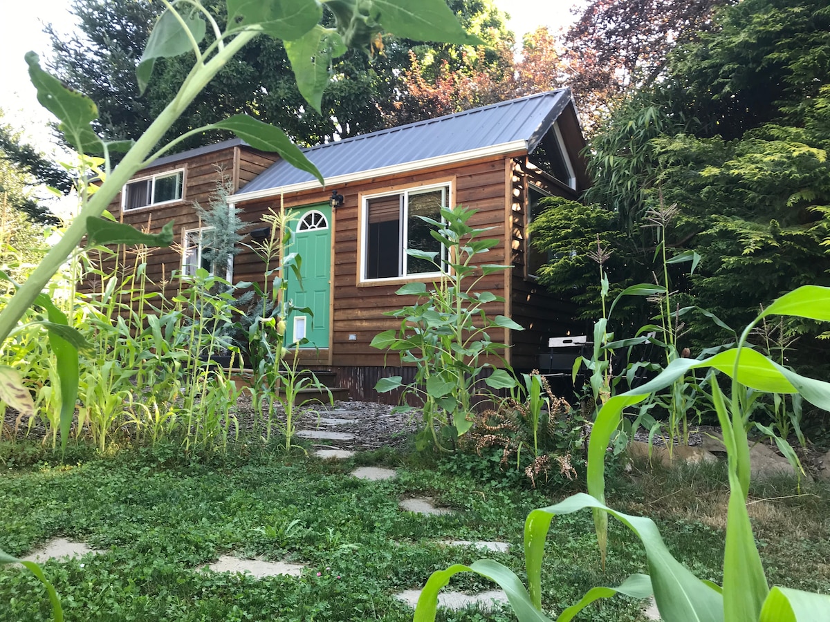 Krenite stazom od kamena do ove udobne, moderne brvnare (minijaturne kuće) sa čvornim borovim zidovima, toplim svetlom i spavaćom sobom/potkrovljem koji gleda na divlje uređeno dvorište i baštu. Ova gostinjska kuća od 300 stopa kvadratnih ima sve što vam je potrebno za udoban boravak u sjajnom PNW-u. Napomena: Prije nego što rezervišete, imajte na umu da je WC šolja u ovom smještaju u WC šolji za kompostiranje, a ne da se ispere. Biće čist i spreman za upotrebu sa uputstvima koja su dostupna u domu.
