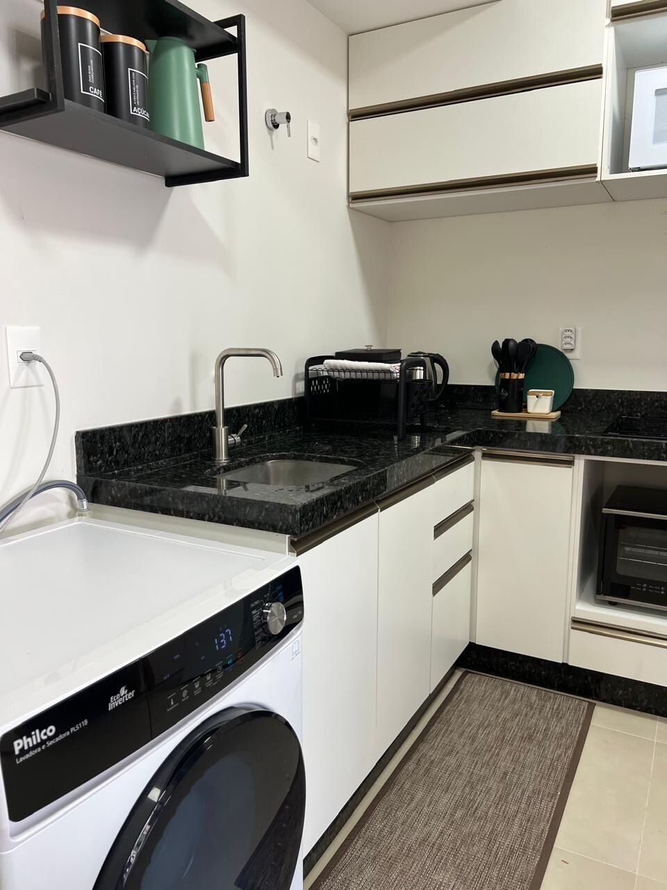 27 m² Studio | bračni krevet | radna površina | Smart TV/IP | internet 300M | klima-uređaj | fen za kosu | mikrotalasna pećnica | indukcioni šporet | sudoper | frižider | posuđe. Integrisano okruženje: dnevna soba, spavaća soba, kuhinja, kupatilo, radni prostor i obroci. Namješten i opremljen stan, na visokom spratu, s pogledom na zalazak sunca. U centru Blumenaua, sa privatnom garažom u G2, bazenom, saunom i teretanom. Zgrada ima plaćenu praonicu veša i samostalni supermarket.