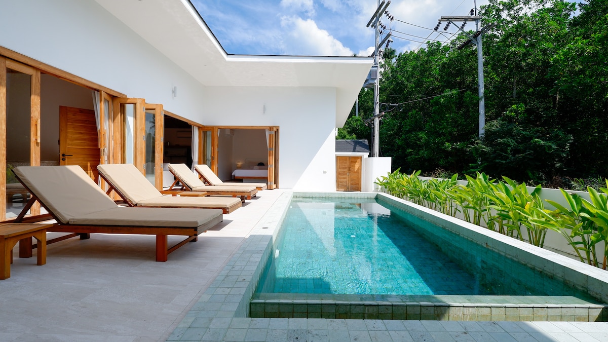 Luksuzna vila s bazenom 3 minuta automobilom od Fisherman Villagea i od plaže (bophut not hills) Renovirana (potpuno!) u junu 2023. godine, uživajte u vili s bazenom s 3 spavaće sobe i 3,5 kupatila + kancelarijskom sobom krevetac za bebe Uživajte u privatnom bazenu i unutrašnjem dvorištu Prostor je tih i blizu svega ! Besplatan Wi-Fi Besplatan parking Potpuno opremljena kuhinja Otkrijte ostrvo 🐘 Dva minuta od ribarskog sela 10 minuta od Čavenga 2 minuta od plaže 3 minuta od lotosa 3 minuta od utočišta za slonove