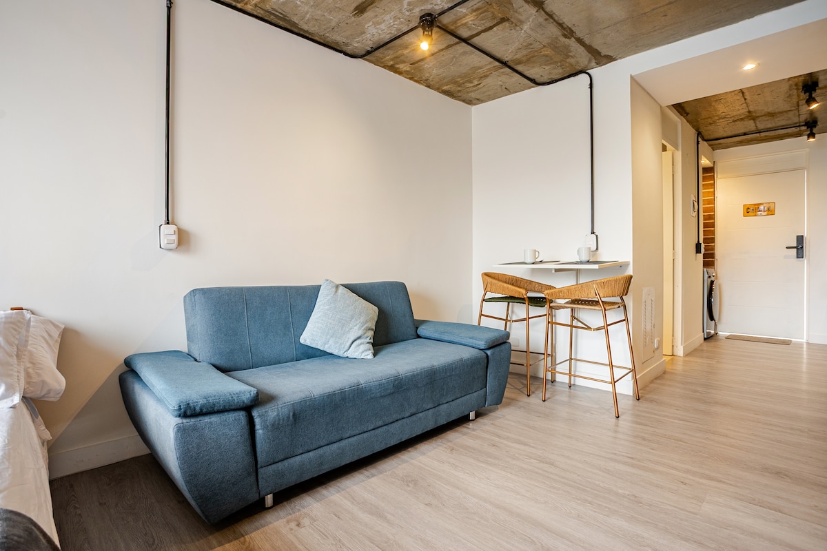 Moderan, tih i strateški prostor u četvrti Spring (sjeverno od Bogote). Tri bloka od TransMilenio Alcalá i blizu Calle 134. Idealno za rukovodioce ili udobne boravke. Brzi Wi-Fi, kamin na plin, mašina za pranje veša, mašina za sušenje veša i natkriveno parkiralište. Zgrada sa liftom i zajedničkim prostorijama (terasa za roštilj i salon). Ima udoban potkrovlje u stilu lofta koje čini doživljaj jedinstvenim (pristup preklopnim stepenicama) Više od 100 recenzija i ocena 4,9 garantuju kvalitet.
