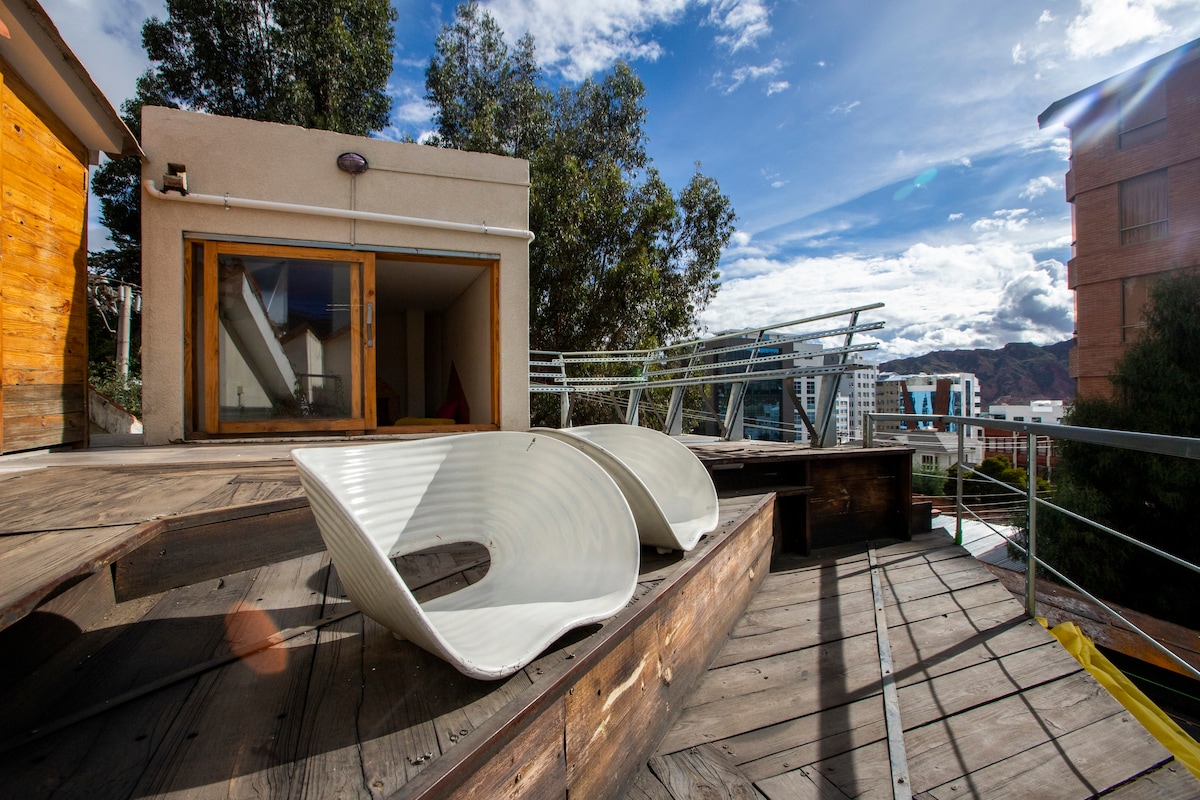 A family-run guesthouse in the milder weather of La Paz city’s wealthier southern district. The creation of architect Lindsay Tellez, who has created a prototype for sustainable living in Bolivia that provides a comfortable and cosy place to stay. The house features a unique vertical greenhouse and water conservation system based on the natural filtration of totora reeds from nearby Lake Titicaca. Small workshops can be arranged on request to learn more about this pioneering form of agriculture.