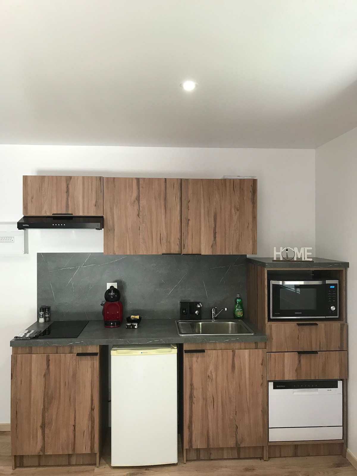 Studio apartman opremljen duplom balneo kadom i mašinom za pranje sudova. (Čajna kuhinja, frižider, mikrotalasna pećnica, klima-uređaj, kapsule za kafu dobrodošlice, boca za vodu, povezani TV, Wi-Fi). Privatna terasa Direktan pristup vešernici opremljenoj mašinom za pranje i sušenje veša. Napolju je teren za pétanque, kao i prostor za druženje opremljen spoljnim umivaonikom i roštiljem. Pristup privatnom video parkingu se vrši električnom kapijom sa diodikodom