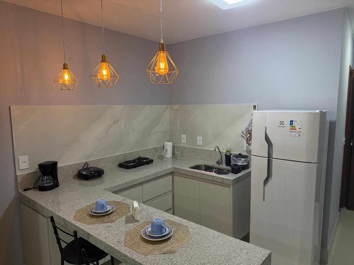 Abrace a simplicidade neste lugar tranquilo e bem-localizado. Estúdio muito arejado, novo, próximo ao centro, mercado , e hospital . Tudo novinho, roupa de cama, travesseiro e toalha para o casal não precisar carregar muita bagagem. Escada com corrimão e degraus largos.