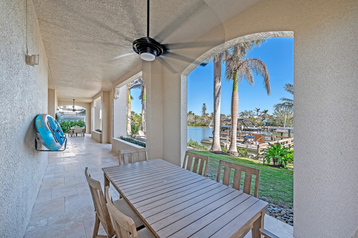 Tarpon - King Bed- Master and guest - Queen Bed. Just a short walk to Barefoot Beach (2.2Miles) , 20 restaurants close by, Publix within 1 Mile, bait store at corner. New baths, kitchen, fresh paint, fans. Large Screened in Lanai, Vaulted Ceilings, New Full Kitchen, Full sized washer and dryer. Room for three cars in the drive. **Unit is Upstairs We have a property across the street & you can sit on the Gulf Access canal New sidewalks have been added on the street where this unit is located.