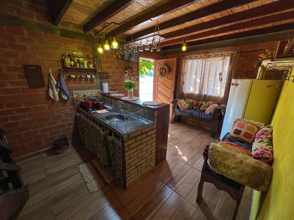 Шармантна колиба, јединствено место са својим стилом, рустичне и модерне конструкције са потпуно климатизованим окружењем, дизајнирана да служи паровима и паровима са до 1 дететом, који желе да креирају своју рутину, избегавајући ограничења хотела и гостионица, овај простор садржи апартман са брачним креветом, комплетном америчком кухињом и 1 софом на развлачење, а по потреби и 1 додатним душеком, поред балкона са роштиљем, ограђеног балкона који служи и паровима са кућним љубимцима.