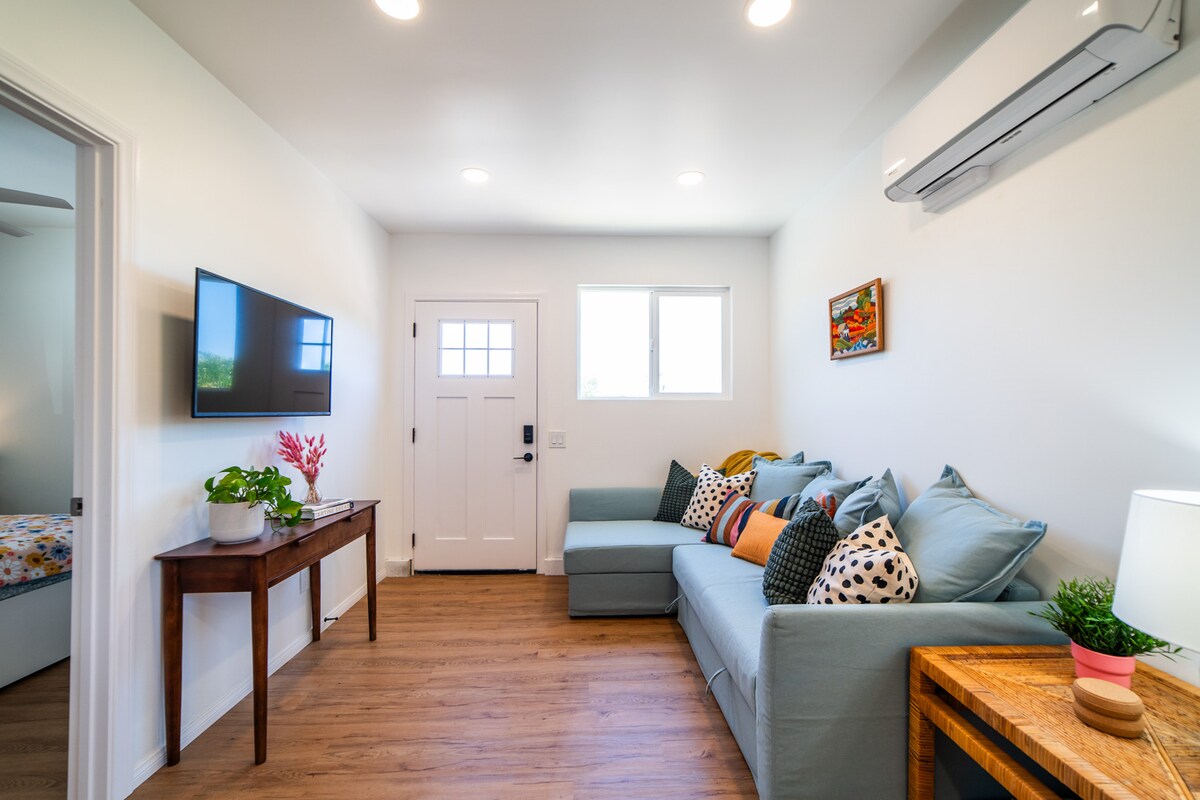 ★ This 950 sq. ft. 1-bedroom Penthouse was completely updated in 2022 and is nestled atop a gated, 5-acre avocado grove ★ Penthouse with light and bright open-ceiling living room & hanging chair ★ Prepare to be wowed by epic panoramic views of surrounding avocado grove, vineyards and valleys. ★ Enjoy your morning coffee or sunset dinner along with the accompanying ‘top of the world’ sensation on your spacious panoramic view balcony.