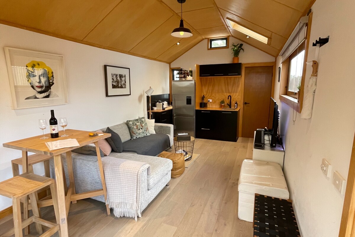 A private bush retreat near Beechworth — designed to slow down and switch off. Fully equipped with reliable power and hot showers, with a fireplace for warmth — all the comfort of home, without the crowds. Unwind by the fire, soak in the outdoor bath and step out under the stars. Venture out to wineries and local history if you wish, then return to your own secluded escape. Sleeps up to 6, however best suited to couples or small groups seeking space, privacy and time to enjoy it.