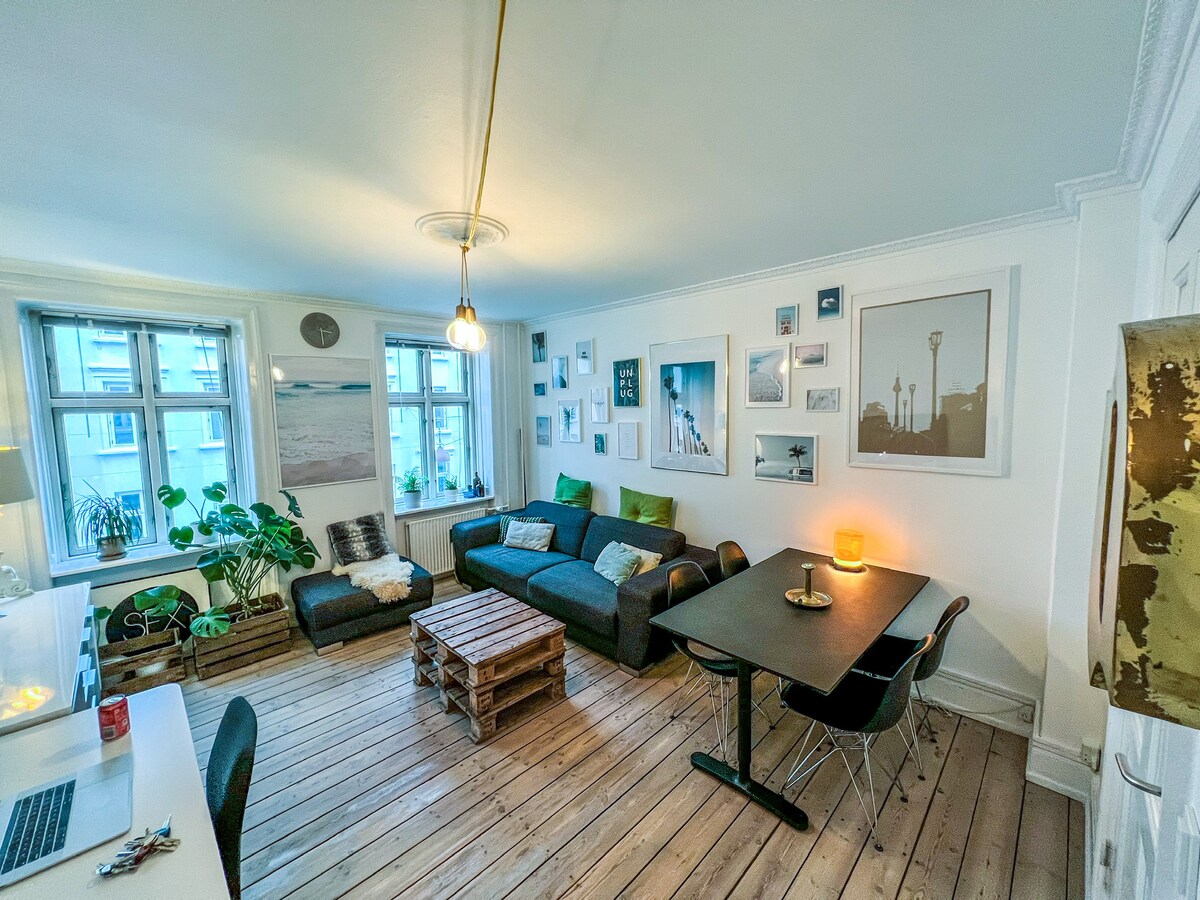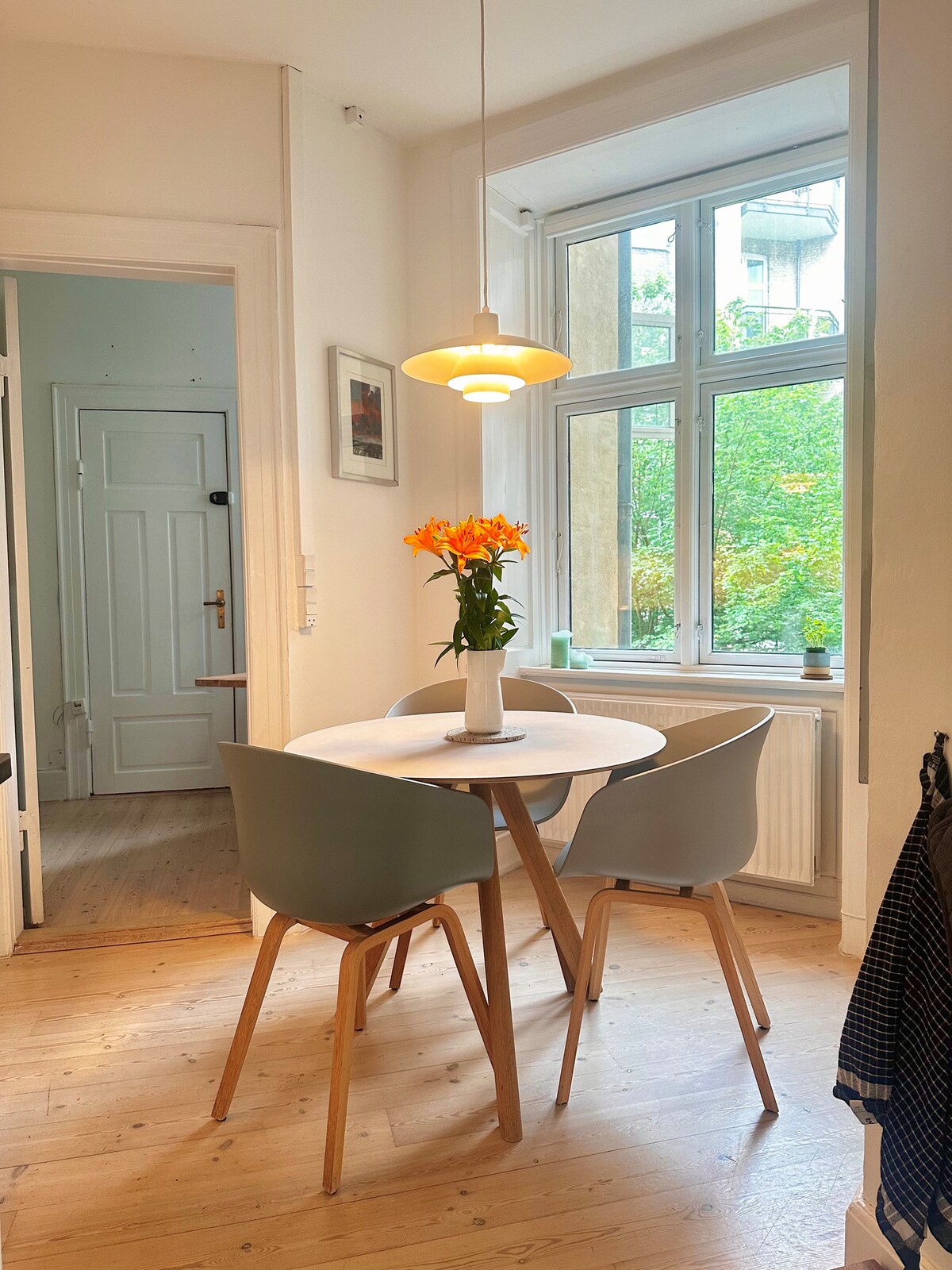 Prelep prostran trosoban stan u srcu Østerbroa. Objekat iz 1898. godine, sa originalnim detaljima. Stan ima spavaću sobu, dnevni boravak sa peći na drva i kaučem na razvlačenje, radnu / trpezariju, kupatilo i svetlu kuhinju sa svime što vam je potrebno. Stan se nalazi u ulici Nordre Frihavnsgade, jednoj od najprijatnijih trgovačkih ulica u Osterbru sa mnoštvom kafića, prodavnica, javnog prevoza itd. Svako jutro možete započeti dan jutarnjom kafom na prelepom osunčanom balkonu.