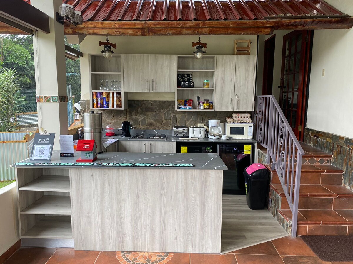 Romantično okruženje, uronjeno u prirodu, a ipak blizu grada. Optički internet. Smješten u prostranim tropskim vrtovima na tradicionalnom imanju Boquete Coffee Estate. Obilje ptica, hranilica i autohtonih košnica. Mi smo dom najvećoj izložbi leptira u Panamasu i specijalizovano preduzeće za med. Nudimo vam obilan doručak. Možemo da ugostimo 4 px, ali cena rezervacije, uključujući doručak, je za 2 piksela. Naplaćujemo dodatnih 15 USD po osobi starijoj od 12 godina, dodatnih 10 USD za djecu mlađu od 12 godina