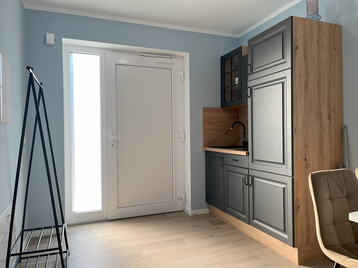 Eine vollausgest. 82 qm Wohnung für 7 Personen mit Garten und gemütl. Gartenlounge. Die Unterkunft, inkl. Außenbereich kann komplett genutzt werden. Das Hauptschlafzimmer hat 2 einzelne Betten, 180x200 und ein Schlafsofa 140X200. Das Bett im zweiten Schlafzimmer ist 140x200. Jedes Zimmer hat einen Schreibtisch und WLAN. Die Wohnung hat eine ausgestattete Küche, ein großes Bad mit Dusche und Sauna. Es gibt weiterhin ein Klappbett 90x200, ein Kinderreisebett 60x120, und ein Kinderhochstuhl.