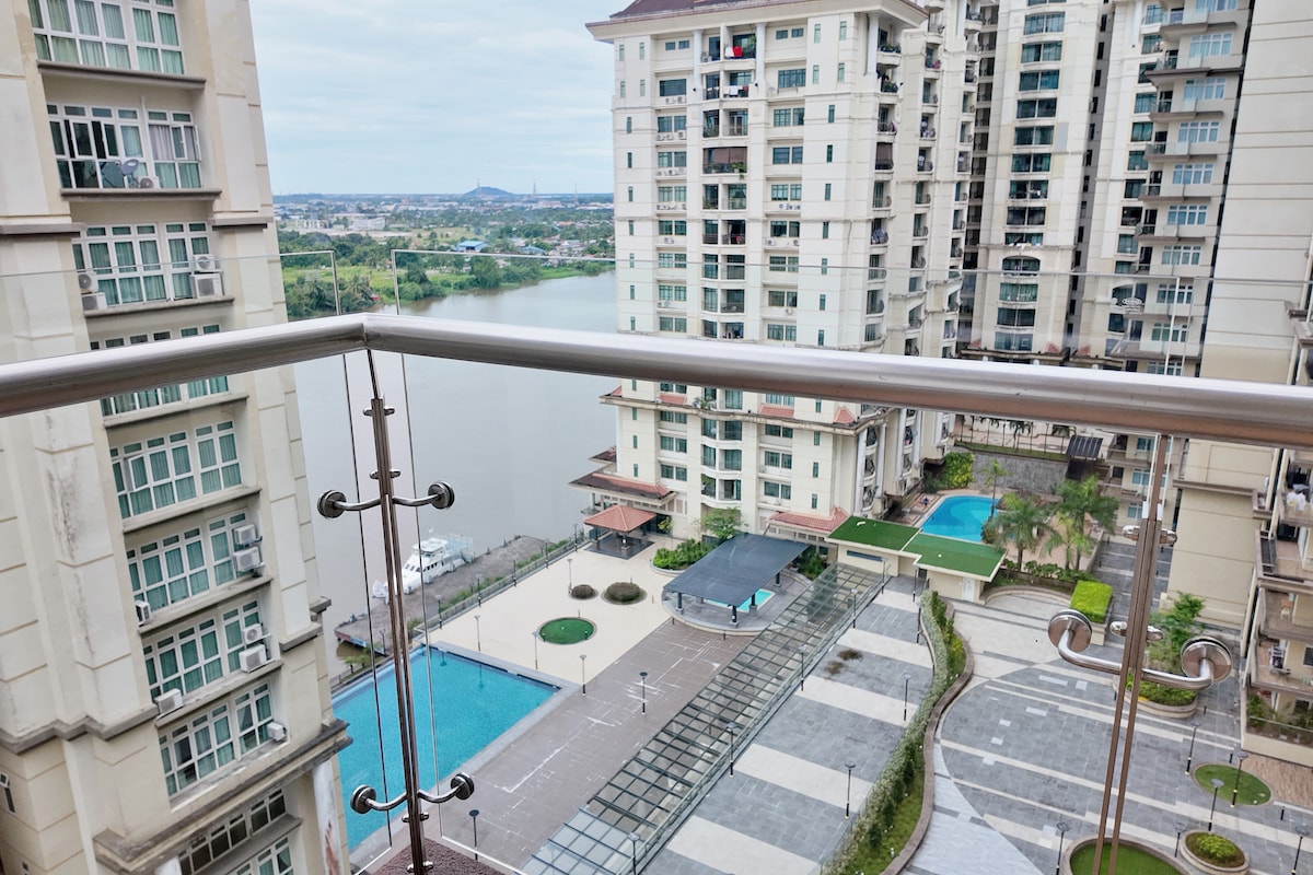 Udoban prostran, 2 spavaće sobe i 1 kupatilo, luksuzni stan sa pogledom na grad koji se nalazi na vrhu najvećeg tržnog centra u Kuchingu (Viva Siti Megamal). Samo 10 minuta vožnje udaljen od međunarodnog aerodroma Kuching Jednostavan pristup glavnim zanimljivim mjestima i poznatim restoranima u Kuchingu. - Prolećni tržni centar (3 km) - Top Spot Food Court (5,3 km) - Kuching Water Front (5 km) - Državni muzej Saravak (5 km) - Malezijski park prijateljstva u Kini (3,5 km)