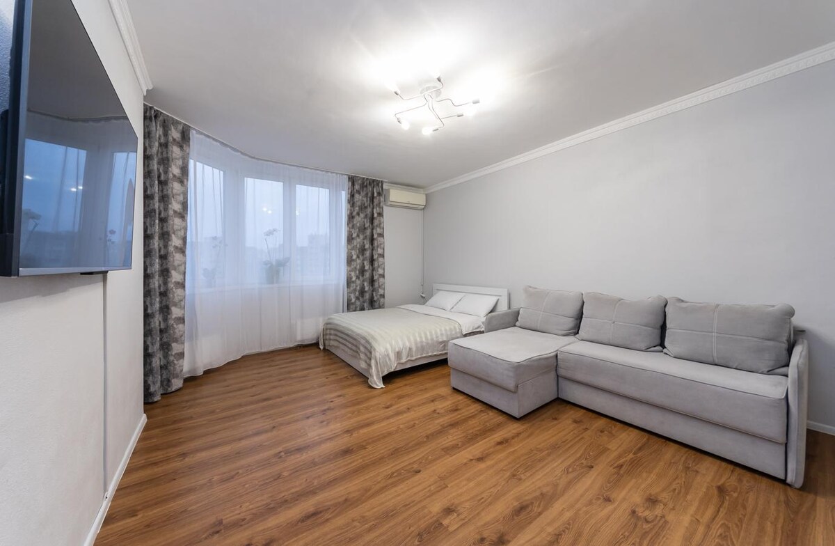 Bright, comfortable 1-room apartment with a beautiful view from the window. Within walking distance (7 minutes) metro Livoberezhnaya. Near the NOVUS supermarket, cafes and restaurants, Puzata Hata, Eurasia, Dominos, McDonald's, grocery stores, market, shopping center Chest, Drama and Comedy Theater, International Exhibition Center. Near Rusanovskaya embankment, a place for walking and sports. By metro, 20 minutes to the city center.