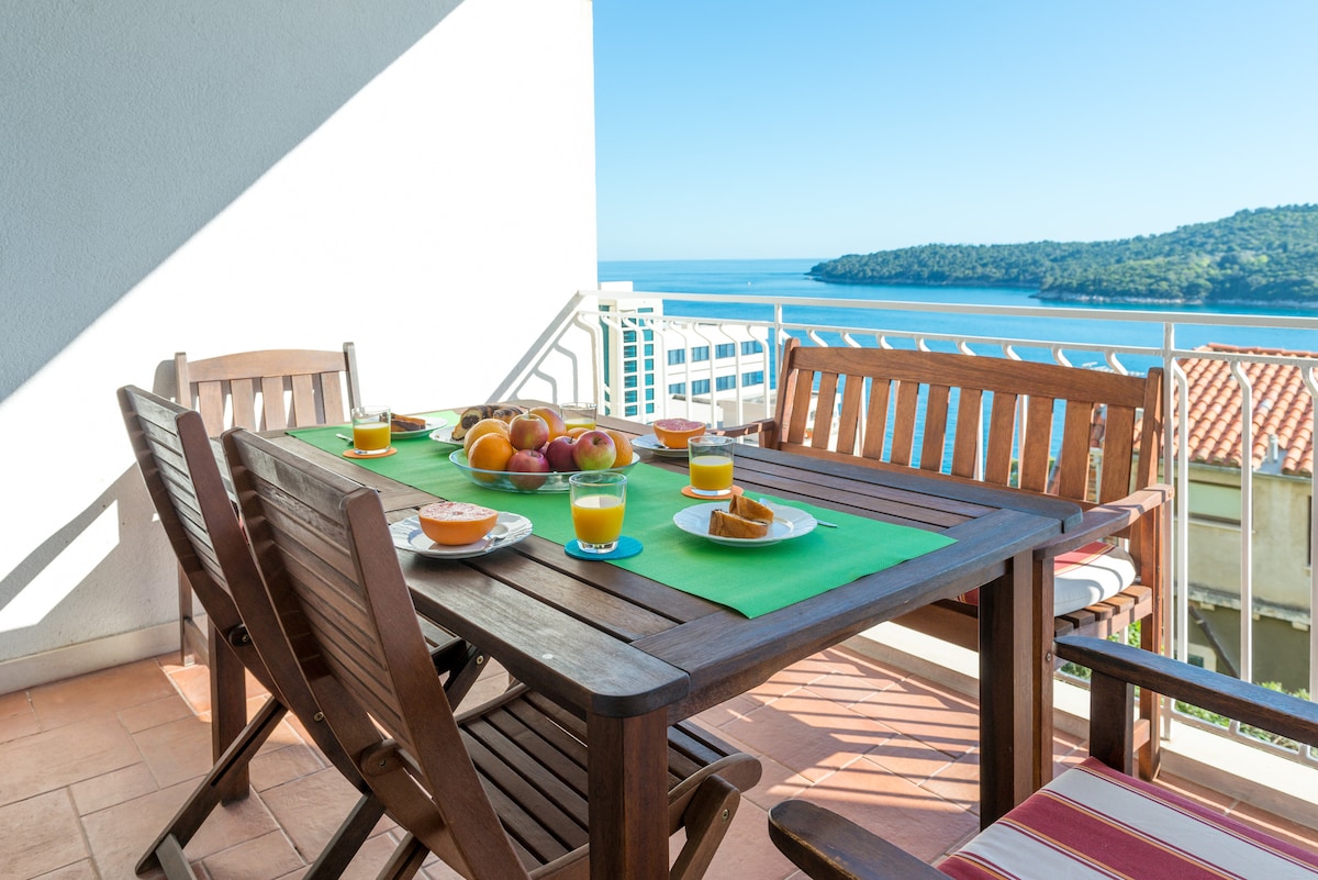 Savršen stan sa jednom spavaćom sobom na vrhunskoj lokaciji u Dubrovniku. Fantastičan pogled na Stari grad i plavi Jadran oduzima dah, a posebno ćete uživati u zalasku sunca. Stari grad je udaljen 10 minuta hoda.