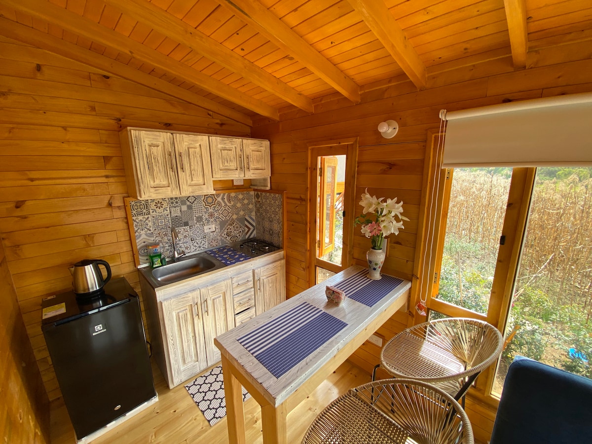 Minijaturna kuća El Refugio s pogledom na dolinu.