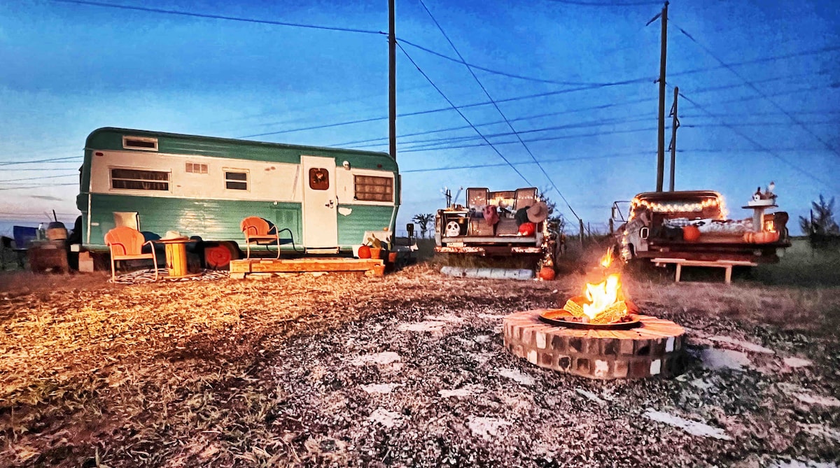 Upoznajte Margaritu, naš starinski kamper iz 1955. godine! Potpuno je obnovljena 2018. godine, ali i dalje zadržava toliko šarma i ličnosti! Savršena je za kratak odmor na selu za one koji vole kampovanje, ali žele mekano mesto za spavanje sa nekoliko šarmantnih stvari kao što su kafa sa filterom, mini-frižider i čist i udoban krevet! Ona sedi pored kuće na ranču na ranču Tailgejt, oko 2,5 milje od „centra“ Volnut Springsa, punog antikviteta, plesa i kupovine!