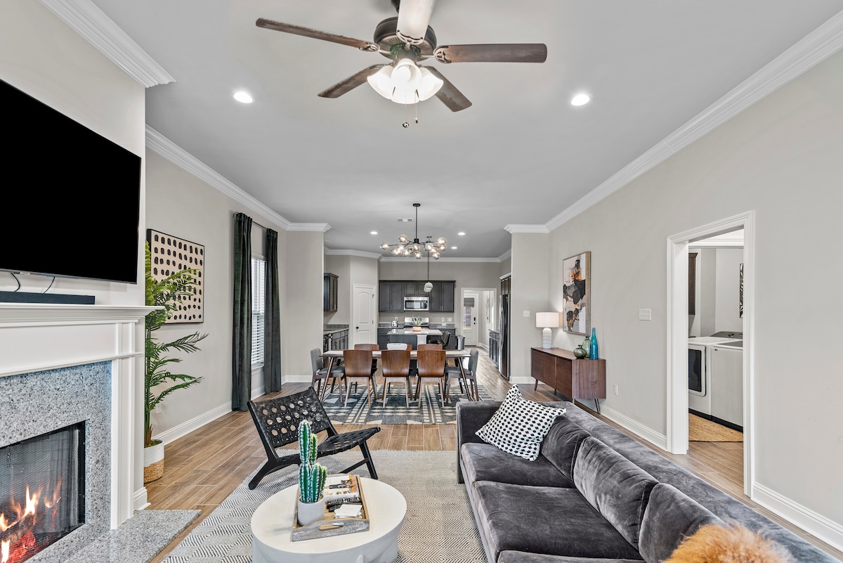 Novoizgrađeni dom sa prijatnim ambijentom. Visoki plafoni i otvoreni koncept daju ovom smještaju prostran osjećaj. Glavna spavaća soba na daljinu pruža privatnost i čini je savršenom za porodicu ili grupe s više gostiju. Tu je ogromna glavna tuš kabina u kupatilu, baštenska kada i granit koji pružaju vrhunsku notu. Natkriveno zadnje dvorište je velike veličine, dvorište je potpuno ograđeno i privatno. Predimenzionirana garaža za 2 automobila savršena je za nautičare! Ne čekajte! Rezervišite smještaj kod nas još danas!