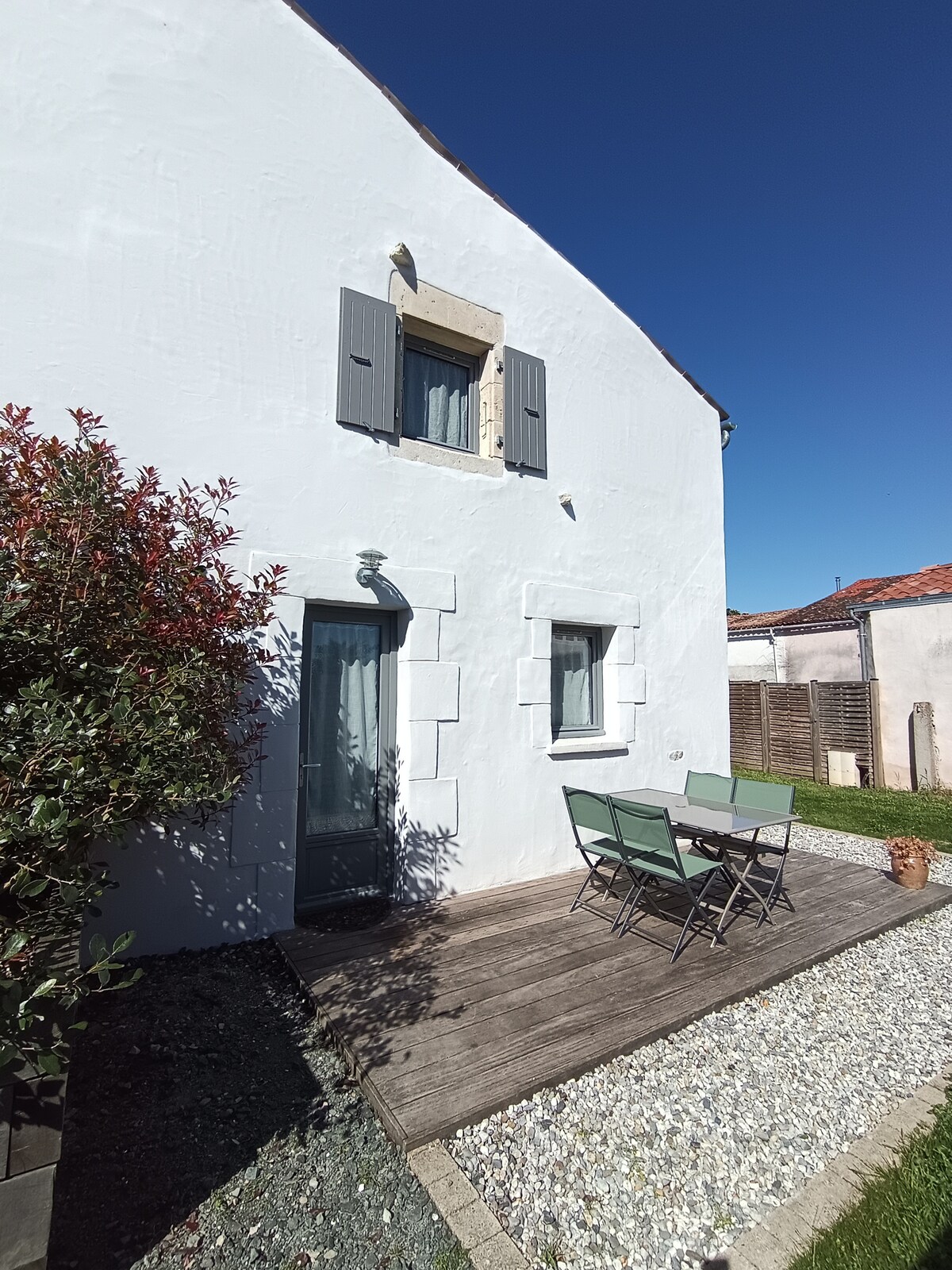 Smeštaj je udaljen 20 minuta od La Rochelle-a, 25 minuta od Ile de Ré 15 minuta od Rochefort-a. Iznajmljivanje od 65 kvadratnih metara se nalazi u malom selu sa pekarom , mesnicom, pećina, kancelarija za duvan. Pored glavne kuće, privatni pristup. Spavaća soba Krevet od 140 ,kauč na razvlačenje od 140 osoba, kupatilo, WC,krevetac i stolica za bebe su dostupni. Opremljena kuhinja,mikrotalasna pećnica, frižider,zamrzivač, mašina za pranje sudova, mašina za veš, TV, pribor za jelo i posuđe