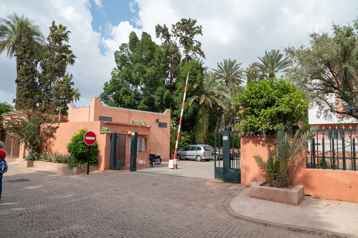 Uživajte u elegantnom i centralnom smještaju u srcu Geliza u mirnom području u blizini Medine. Majorelle garden: 2min hoda Drevna Medina - 5 minuta hoda Smještaj se nalazi na 1. spratu u novoj zgradi sa liftom. Dekor je napravljen od plemenitih materijala. Posteljina je antialergijska. Kućni ljubimci nisu dozvoljeni Zabave nisu dozvoljene Zabranjeno pušenje i vaporizatori Dolazak je non-stop.